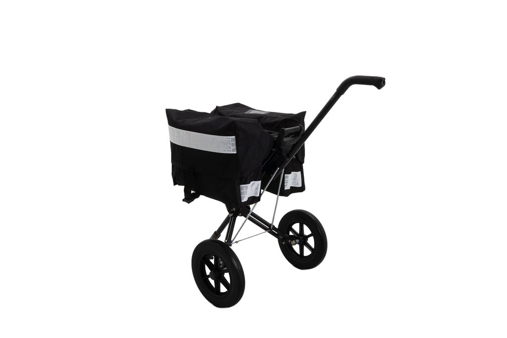 This unique trolley is designed to take 2 delivery satchels, it folds down to a very small size to allow maximum storage space in the back of a vehicle or in a warehouse .TROLLY ONLY, BAGS SOLD SEPARATELY